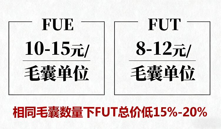 | FUT | 6-12元 | 大面积脱发 | 需切取头皮条,需预留长发遮盖疤痕 |