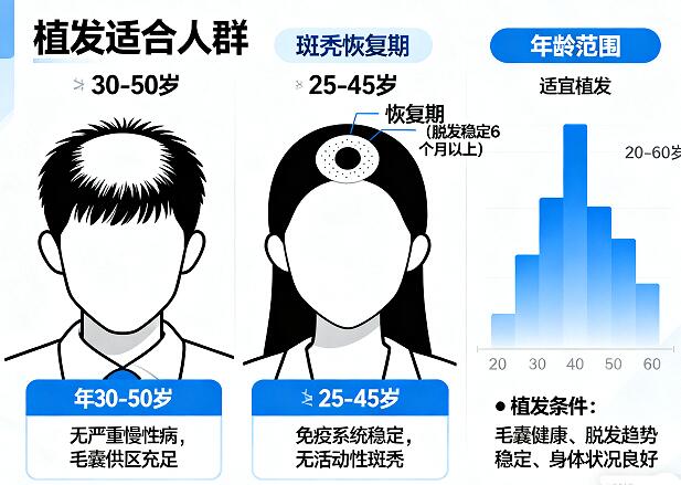 雄激素性脱发者:男性“M型”脱发、女性头顶稀疏,后枕部毛囊充足者,植发可显著改善形象。