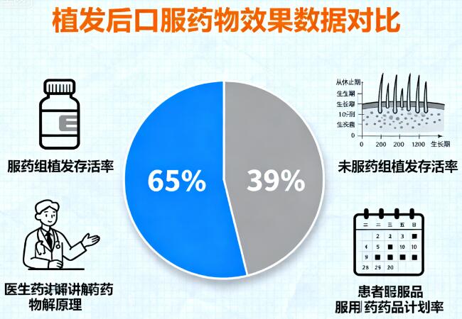精准分型用药:雄脱患者术后需联合使用非那雄胺+米诺地尔,疤痕性脱发患者则无需口服药物。
