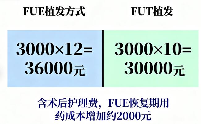 FUT技术因单价较低,同等面积费用可降低20%-30%,但疤痕问题限制了其应用场景。