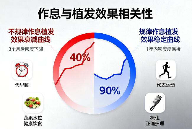 植发后坚持规律作息,不仅能让效果持久性提升30%以上,更是毛囊健康生长的“隐形守护者”!2026年临床数据显示,术后1个月内保持每日7-9小时睡眠的患者,毛囊存活率比熬夜者高25%,新发生长速度加快40%。本文将深度解析作息与植发效果的关联,并揭秘熬夜的“五大致命伤害”。