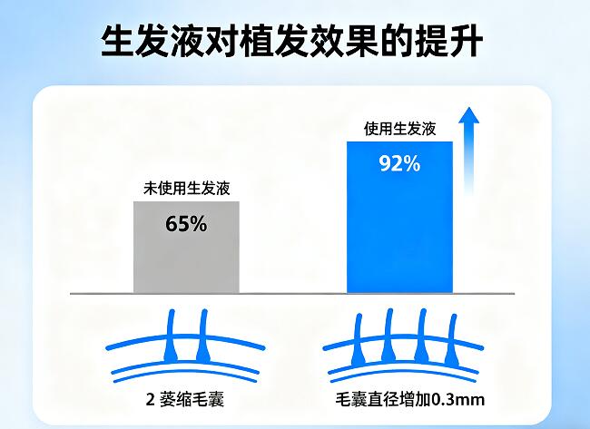 新移植的毛囊在术后1-3个月处于“适应期”,生发液中的侧柏叶、人参根等草本成分可促进头皮微循环,为毛囊提供营养支持。临床案例中,术后联合使用生发液的患者,毛囊存活率比未使用者高20%。