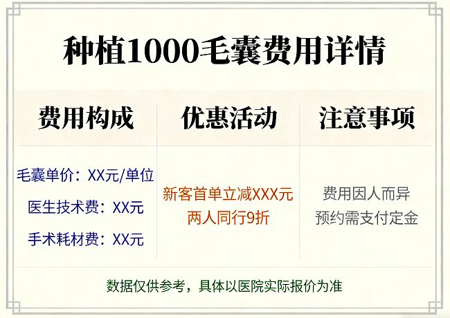 小型诊所:价格灵活但风险高,FUE技术单价可能低至8元/毛囊,1000单位总价8000元,但需核实医生资质与设备消毒情况。