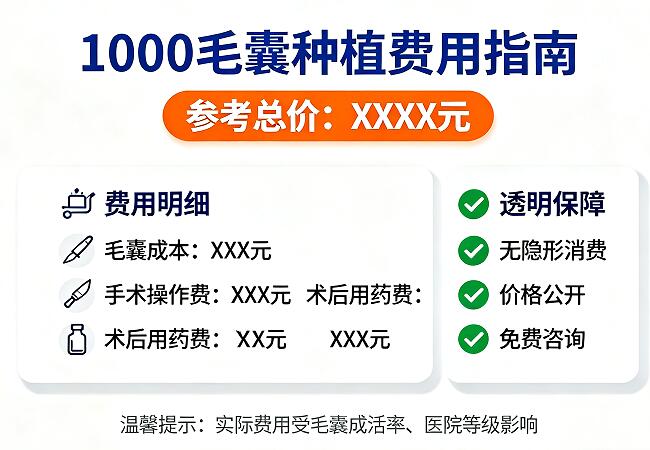 FUE技术:单毛囊提取,创伤小、恢复快,单价12-20元/毛囊。种植1000个毛囊总费用约1.2万-2万元,是2025年市场主流选择。