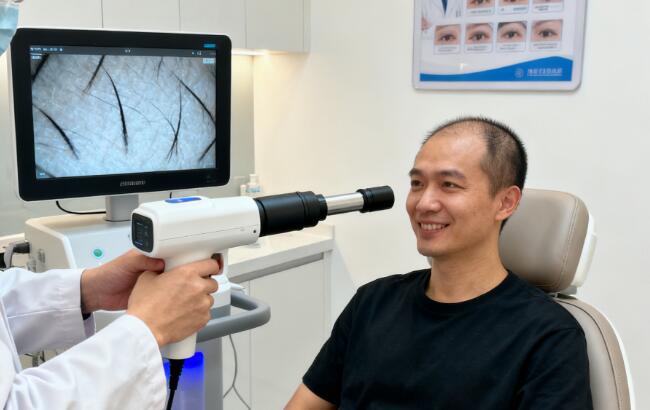 全程管理:术前进行毛囊检测+激素六项筛查,术后坚持使用低能量激光生发帽促进循环。