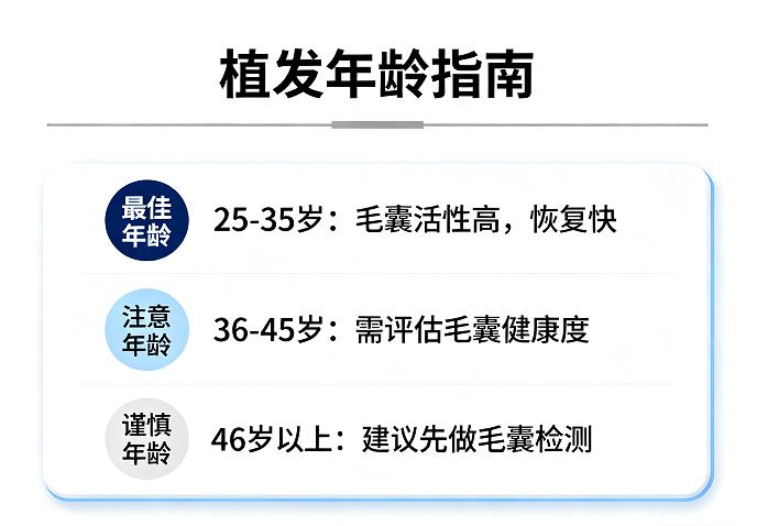 60岁以下人群优先选择春秋季手术以减少感染风险;60岁以上者需签署风险知情书,并预留6个月观察期。记住:年龄只是数字,科学评估毛囊资源、身体状况与脱发类型,才是决定能否植发的关键!若供区毛囊资源不足,可先通过药物控制脱发,再结合假发、纤维粉等非手术方式改善形象。