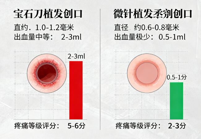 临床案例显示,微针植发术后疼痛多为“轻微胀痛”,3天内基本消失;而宝石刀植发术后疼痛达“中度刺痛”,需服用止痛药缓解,恢复期长达7-10天。以发际线种植为例: