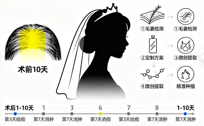 建议新娘选择正规医疗机构进行植发手术,确保医生资质和手术安全。同时,要与医生充分沟通,制定个性化的植发方案,确保术后效果符合预期。术前10天植发虽时间紧迫,但只要准备充分、护理得当,新娘定能以最佳形象迎接人生重要时刻。