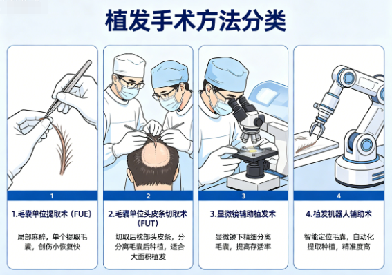 三种,植发手术主要有三种常见技术:FUT、FUE和微针植发技术,具体选择需结合个人毛囊条件、脱发程度及美观需求综合评估。